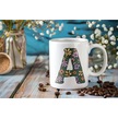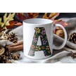 A Baş Harf Çiçek Desenleri İle Natural Tarz Kupa Bardak - Kişiye Özel Çiçekli Kahve Çay Bardak - Beyaz