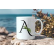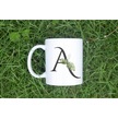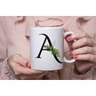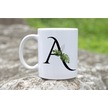 A Harf Zarif Yaprak Desenli Kupa Bardak - Naturel Sade Alfabe Harfli Bardak - Kişiye Özel Hediye Beyaz