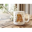 A Harfi Bal Arısı Tasarım Kupa Bardak - Bal Ve Petek Desenli Kişiye Özel Kahve Kupası - Hediyelik Beyaz