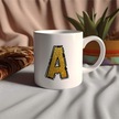 A Harfi Gold Simli Kupa Işıltılı Alfabe Harf Tasarımlı Kahve Kupası - Kişiye Özel Hediye Beyaz