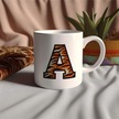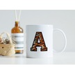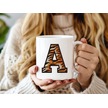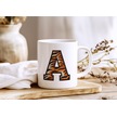 A Harfi Kaplan Figürlü Nakış Desenli Kupa Bardak - Kişiye Özel Vahşi Hayvan Desenli Kupa - Hediye Beyaz
