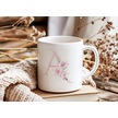 A Harfi Pembe Çiçek Desenli Kupa Bardak - Zarif Pembe Çiçek Tasarım Kahve Çay Kupası - Hediye Beyaz