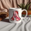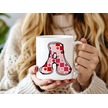 A Harfi Pembe Kareli Kalpli Göz Emojili Kupa Bardak Eğlenceli Kareli Tasarım Kahve Çay Kupası Beyaz