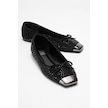 Abra Siyah Süet Taşlı Fiyonklu Kadın Babet Ayakkabı Siyah Süet
