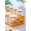 Acar Malibu Bambu Standlı 7 Li Borosilikat Cam Baharatlık Seti Şeffaf