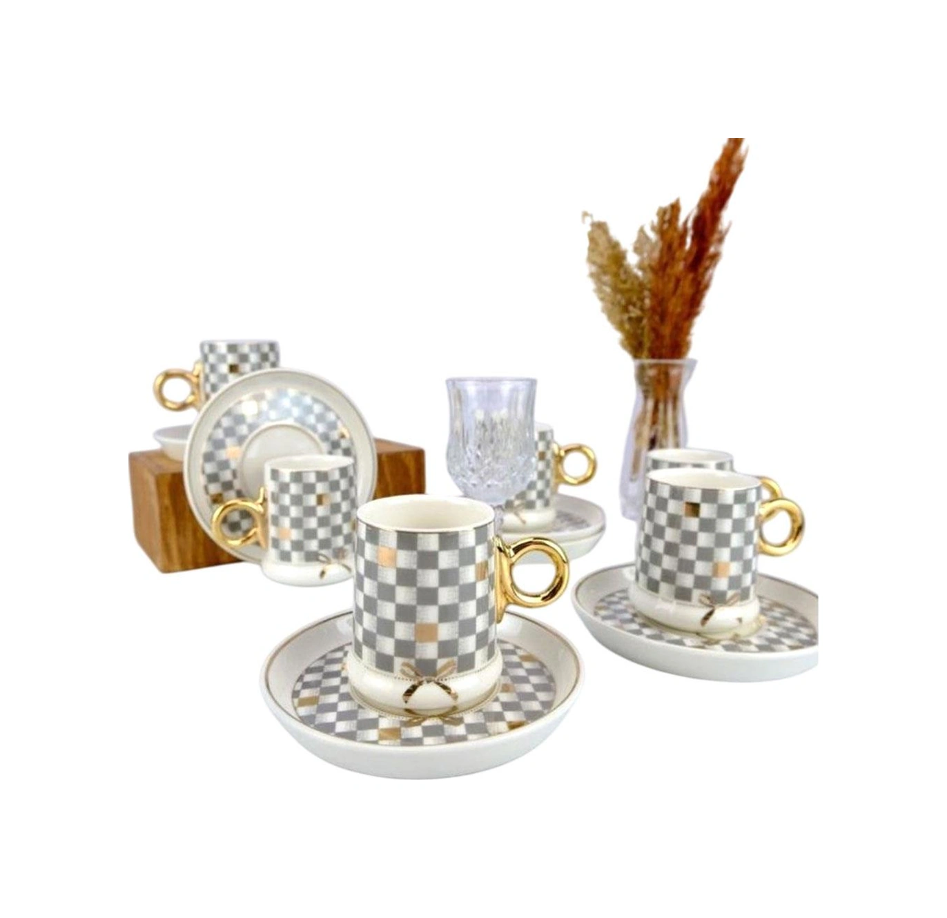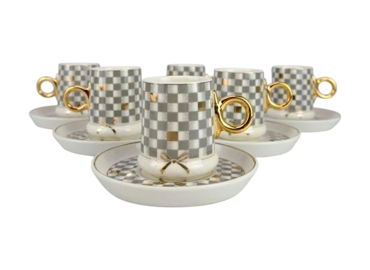 Acar Mxg-22-0125 Gri Almond 6lı Porselen Kahve Fincan Takımı Gri