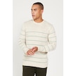 AC&Co / Altınyıldız Classics Erkek Bej Mınt Standart Fit Normal Kesim Bisiklet Yaka Çizgili Triko Bej