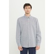 AC&Co / Altınyıldız Classics Erkek Grı Comfort Fit Rahat Kesim Düğmeli Yaka Keten Gömlek Gri