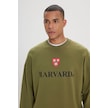 Ac&co / Altınyıldız Classics Erkek Haki Oversize Fit Bol Kesim Harvard Lisanslı Pamuklu Bisiklet Yaka Sweatshirt Haki