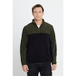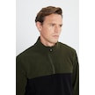 AC&Co / Altınyıldız Classics Erkek HAKI-SIYAH Anti-Pilling Tüylenme Yapmayan Standart Fit Bato Yaka İçi Polarlı Polar Sweatshirt 4A5221100015HSYXL
