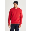 AC&Co / Altınyıldız Classics Erkek Kırmızı Standart Fit Normal Kesim İçi Polarlı Bisiklet Yaka Sweatshirt Kırmızı