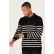 AC&Co / Altınyıldız Classics Erkek Sıyah-antrasıt Standart Fit Normal Kesim Polo Yaka Çizgili Triko Kazak Siyah - Antrasit