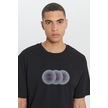 AC&Co / Altınyıldız Classics Erkek Sıyah Loose Fit Bol Kesim %100 Pamuk Baskılı Bisiklet Yaka Tişört Siyah