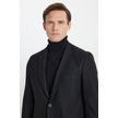 AC&Co / Altınyıldız Classics Erkek Siyah Regular Fit Rahat Kesim Mono Yaka Kapak Cepli Yünlü Ceket Siyah