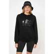 Unisex Sırt Baskılı Kapüşonlu Üç İplik Oversize Sweatshirt - Siyah Siyah