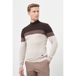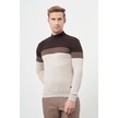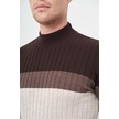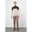 Açık Bej Uzun Kol Kendinden Desenli Örme Yarım Balıkçı Yaka Classic Slim Fit Triko 1012245154 Açık Bej