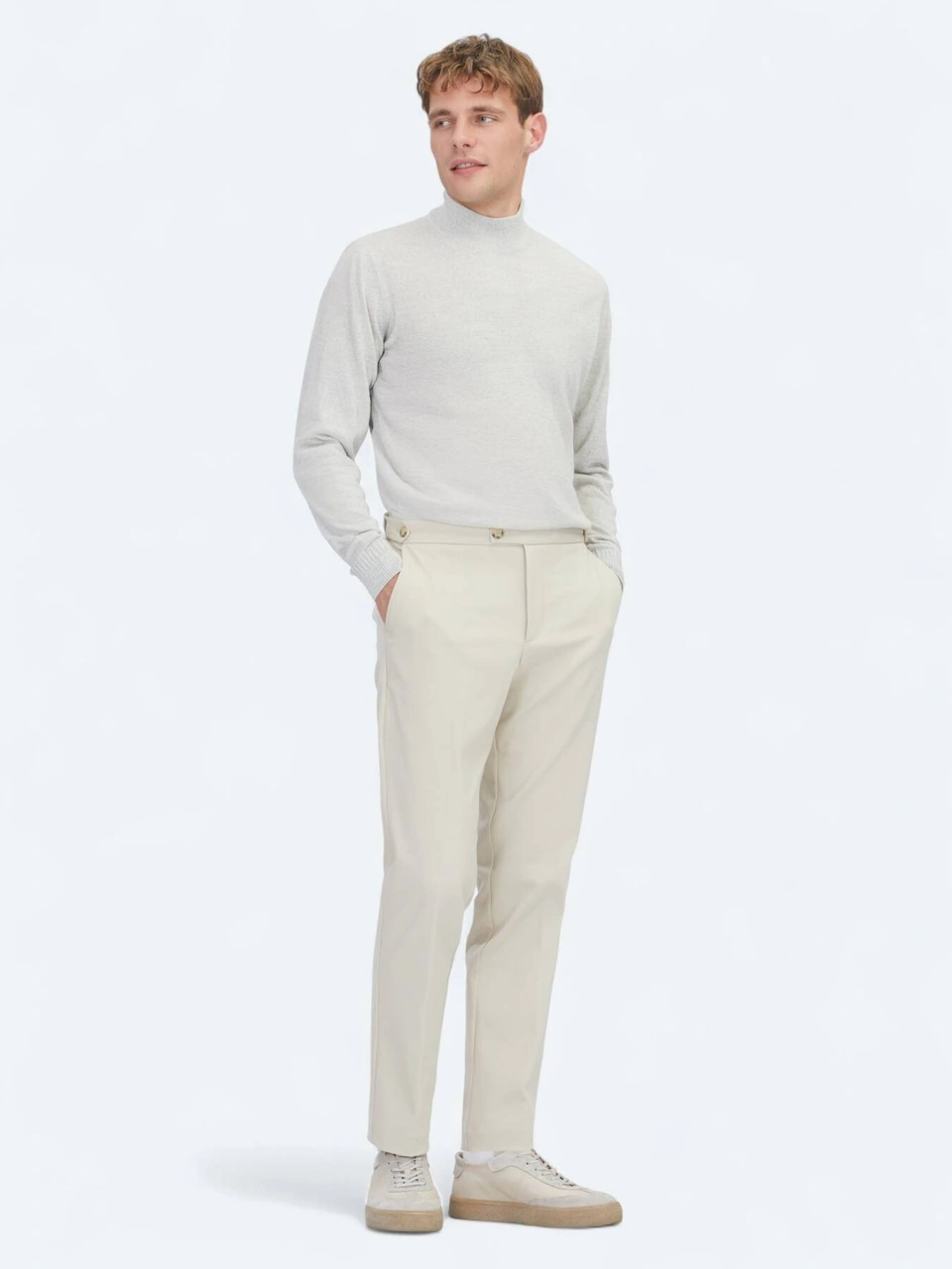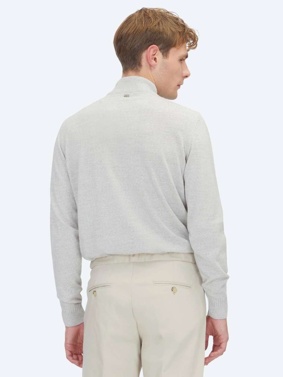 Açık Gri Yarım Balıkçı Yaka Jakarlı Yün Karışımlı Triko Kazak Açık Gri