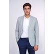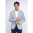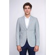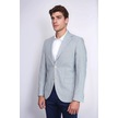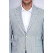 Açık Mavi Çizgili Keten Dokulu Gold Renk Metal Düğmeli Slim Fit Erkek Blazer Ceket Wessi Navy Blue