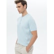 Açık Mavi Hakim Yaka Jakarlı Triko Açık Mavi