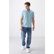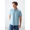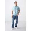 Açık Mavi Pamuklu Kalın Yumuşak Dokulu Polo Yaka Oversize Fit Basic Erkek T- Shirt - 88381 Açik Mavi