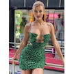 Açık Yeşil Tül Üzeri Flog Baskılı Leopar Desenli Mini Elbise-açık Yeşil Açık Yeşil