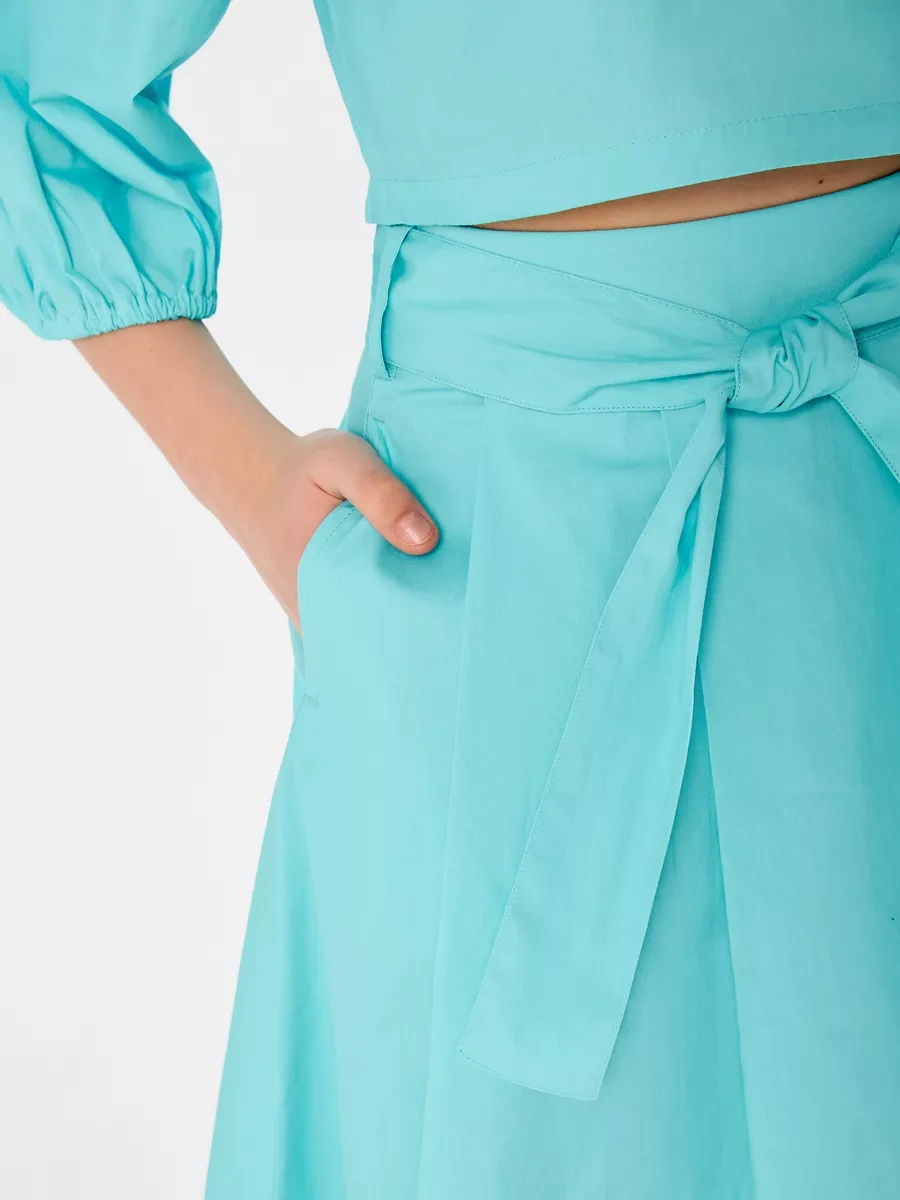 Acoola Kıvrımlı Kemerli Uzun Şık Etek 215004008 Turkuaz