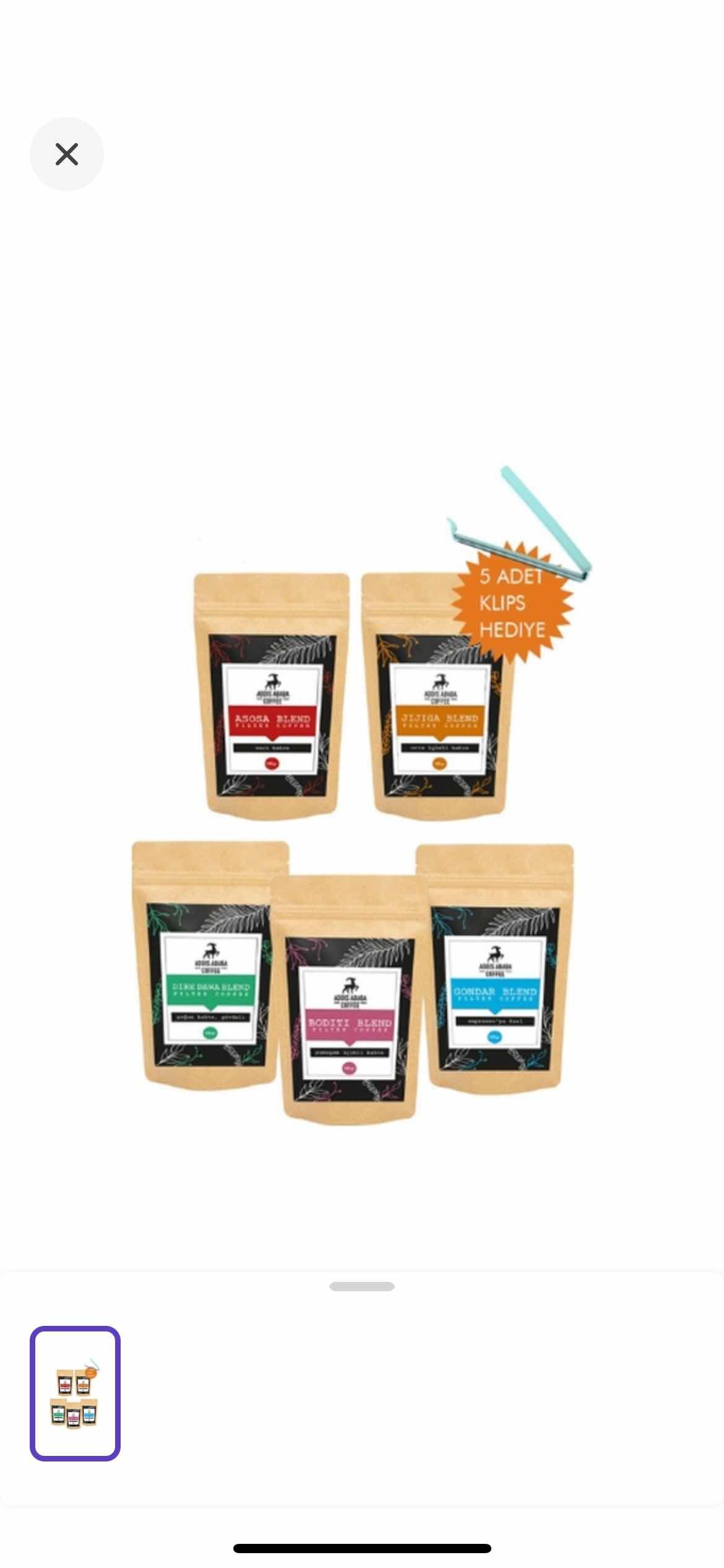 Addis Ababa Coffee Etiyopya Kahveleri Filtre Kahve 5 x 100 G + Klips 5'li