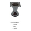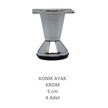 Adilon Konik Ayak, Krom, 5 Cm, 4 Adet Dolap, Mobilya, Puf Ayağı Vidaları Hediye Krom