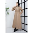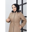 adın Içi Kürklü Astar Altı Elyaf Belden Büzgülü Uzun Pardesü Açık Bej