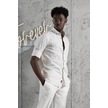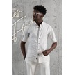 Advante İnce Çizgili Yaka Düğmeli Katlamalı Kol Pamuklu Slimfit Yazlık Keten Gömlek Gri