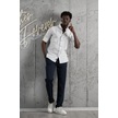 Advante İnce Çizgili Yaka Düğmeli Katlamalı Kol Pamuklu Slimfit Yazlık Keten Gömlek Mavi