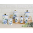 Aero Mavi Çiçek Desen 8 Parça Gold Standlı Porselen Baharat Takımı Purebone-40 Beyaz