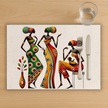 Afrikalı Kadınlar Tasarımlı Amerikan Servis, Tabak Altlığı & Şık Masa Dekoru, Ev Hediyesi, 2 Adet Krem