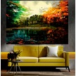 Ağaçlar Ve Göl Manzaralı Sanatsal Dekoratif Duvar Tablosu