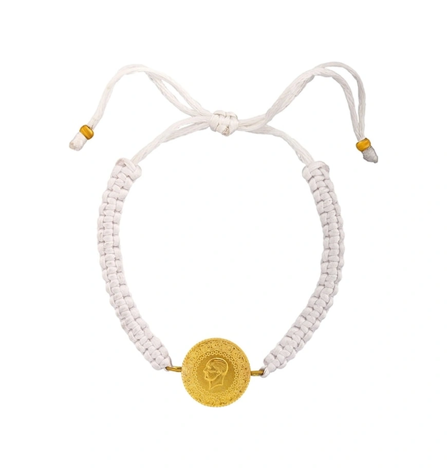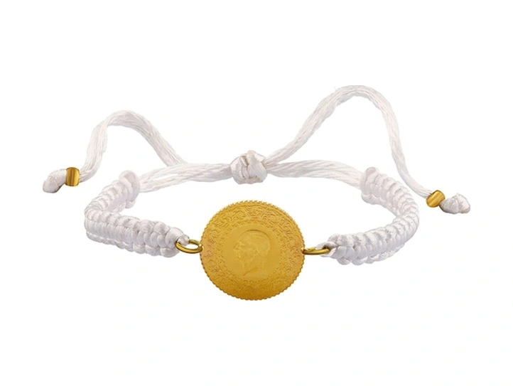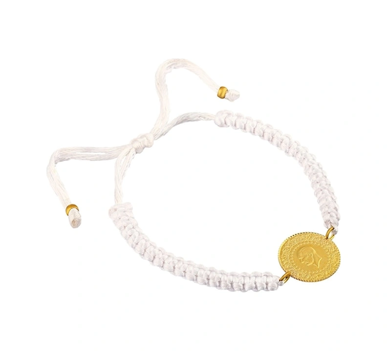 Agakulche 22 Ayar Yarım Altınlı Beyaz İpli Bileklik