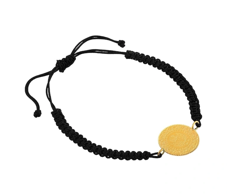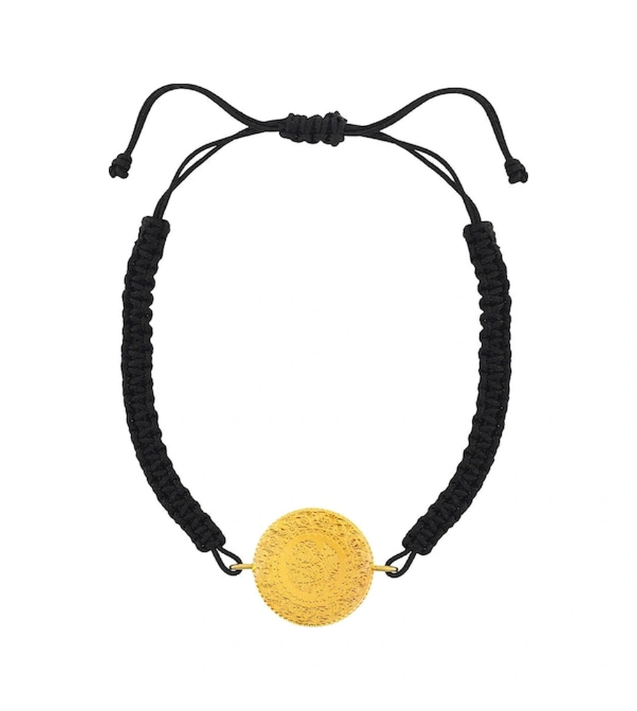 Agakulche 22 Ayar Yarım Altınlı Siyah İpli Bileklik