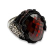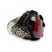 Agakulche Gümüş Erkek Kırmızı Taşlı Damask Desen Yüzük Gümüş