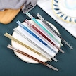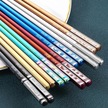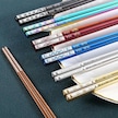 Agoodshop Mavi Paslanmaz Titanyum Altın Kare Yemek Çubukları Ev Otel Seti Hediye Kutusu Mavi Mavi