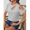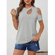 Ahes Shopping Kadın Kısa Kollu Tek Omuzu Açık Damla Detaylı Viskon Bluz Gri