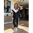 Ahes Shopping Kadın Kısa Kollu V Yaka Siyah Beyaz Renkli Viskon Iki Iplik Kumaş Eşofman Takımı Siyah