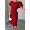 Ahes Shopping Kadın Kısa Kollu Yuvarlak Yaka Pileli Janjan Krep Elbise Kırmızı