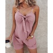 Ahes Shopping Kadın Kolsuz Askı Aksesuarlı Önü Bağlama Detay Salopet Şort Tulum Pembe