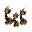 Ahşap Aborjin Üçlü Kedi Dekoratif Biblo No.1 16 Cm