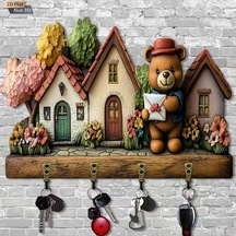 Ahşap Anahtarlık Ve Dekoratif Duvar Panosu, 4 Askılı 0021