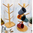 Ahşap Bambu Bardak Kupa Fincan Askılığı Askısı 6 Askılı 2 Adet