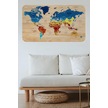 Ahşap Görünümlü Eğitici Detaylı Atlası Dünya Haritası Duvar Sticker -60x105-3856 Renkli