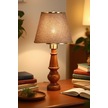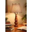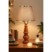 Ahşap Gövdeli Kumaş Başlıklı Dekoratif Abajur Masa Lambası Aydınlatma Lamba Kahverengi
