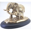 Ahşap Kaide Üzeri Pirinç Fil Ve Yavrusu