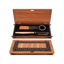 Ahşap Kutulu Bakır Roller Kalem Ve Taba Anahtarlık Set Hediyelik - 90148589445091000f