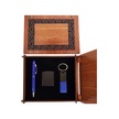 Ahşap Kutulu Mavi Kalem Anahtarlık Ve Çakmak Set 01